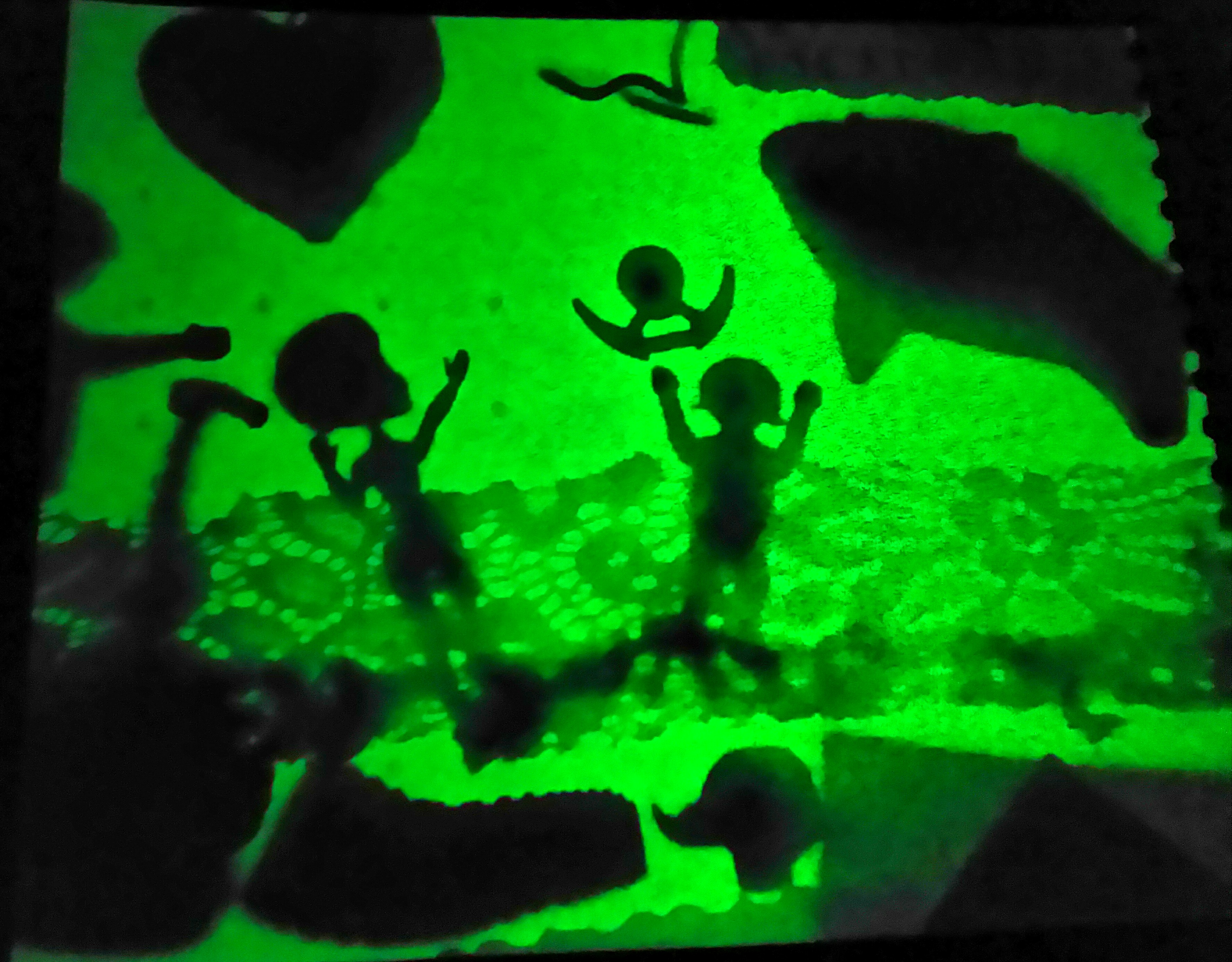 Y, ¡al fin! -que, lejos de ser el final de algo, será, mejor, un nuevo y brilloso comienzo para nuevxs y múltiples lectorxs-, otro libro laaaaargamente esperado llega a nuestro salón escaldado: Nocturno, recetario de sueños, la gran obra poético-narrativa-visual de Isol, que nos ensueña y brilla en la oscuridad. Pero este librazo oportunamente multipremiado es mucho más que un formato novedoso o una bella ocurrencia técnica. Es, en todo caso, un moderno desarrollo de una vieja idea germinadora de literatura: habiendo dos lados (e incluso dos relatos), uno visible y “convencional” y otro escondido y “fantasioso”, hay entre ambos un punto de pasaje: un foso donde se escabulle un conejo, un espejo, un armario, un viejo libro, una torre de cubos o, como otro ejemplo más pertinente, los sueños. Pero en el caso de Nocturno, además, ese pasaje es físico y se da desde la luz: iluminada la hoja, en contraste negro y blanco y azules, vemos y leemos algo. Pero, mientras tanto, el pliegue escondido de mágica tinta se carga de fulgores que harán aparecer el borde oculto, el otro lado, el sueño soñado.